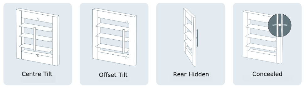 - Rear Hidden (metal tilt rod visible at rear) – Micro-screw fixing included