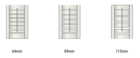 There are three different louvre sizes for you to choose from. Each one can look great in it’s own setting and there are no hard and fast rules as to which one you should choose. Very often the size of the panel you’ve chosen will dictate the size of louvre you decide on. Going back to our previous example of the four feet by three feet window, if you decided on just two panels, either the 64mm or the 89mm louvre would suit best whereas if you decided on four panels maybe the 46mm or the 64mm would suit better. At the end of the day it’s down to your personal choice. The majority of our customers choose the 64mm louvre as it looks good in almost any environment.