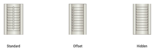 A tilt rod is the central bar at the front of the shutters panel which is used to open and close the louvers. The traditional look has the tilt rod in the middle however many of our customers opt for an off set tilt rod which means the tilt rod is fitted 25mm from the edge of the louvre. You can however choose to design your shutters without a tilt rod by opting for a hidden tilt rod, also known as easy tilt.  A discrete metal rod is connected to the louvres to the rear of the panel. Moving one louvre with your hand means all the louvres open and close together.